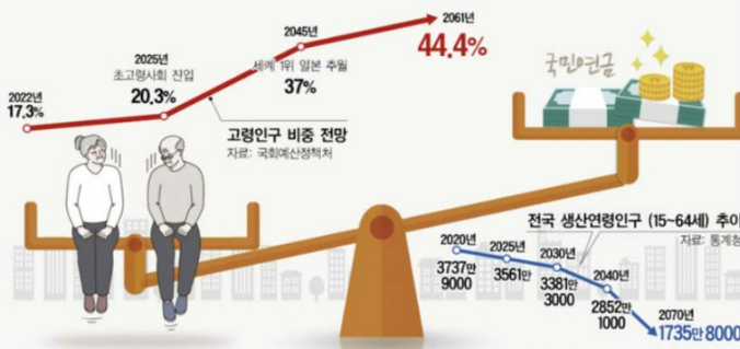 국민연금은 범국민적으로 개인의 노후 보장을 국가에서 함께 지원한다는 취지로 설립되었습니다. 하지만 최근 한국이 빠르게 고령화 사회로 진입하고, 인구 구조가 크게 변화하게 되면서 국민연금에도 개선을 요구하는 목소리가 커지고 있습니다. 왜 그럴까요?
