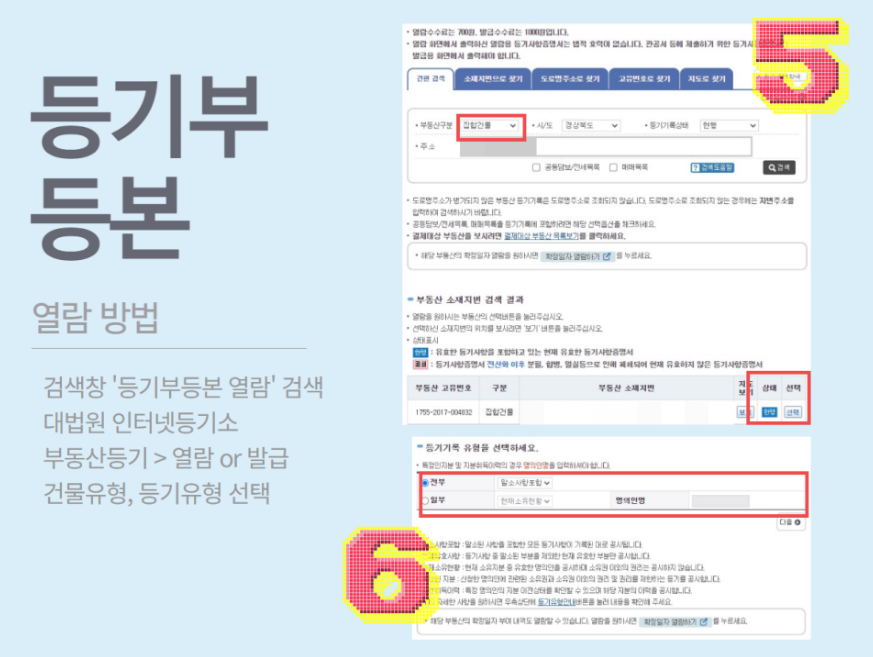 만약 단독 주택인 경우에는 등기부등본 발급 시 건물용과 토지용 2개를 함께 열람 또는 발급해보셔야 합니다. 토지 위에 어떤 복잡한 권리 관계가 있을지 모르기 때문에 한꺼번에 받아서 확인해보시는 것이 좋습니다.