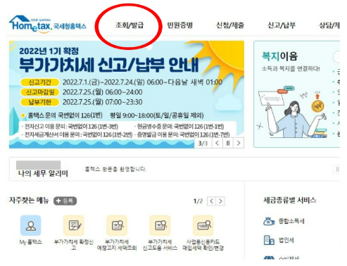 가장 먼저 할 일은 전자세금계산서 발급을 위해 국세청 홈택스에 접속하는 것입니다. 그리고 위에 말씀 드린 범용인증서 또는 전자세금계산서 전용 공인인증서를 통해 로그인을 진행하시면 됩니다.