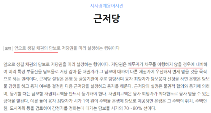 근저당권은 앞으로 생길 채권의 담보로 해당 부동산에 저당권을 미리 설정하는 행위입니다. 근저당권은 채무자가 채무를 이행하지 않을 경우에 미리 대비하여 특정 부동산을 담보물로 저당을 잡아둔 채권자가 추후 그 담보물에 대해 다른 채권자에 우선해서 변제를 받을 것을 목적으로 하는 것입니다.