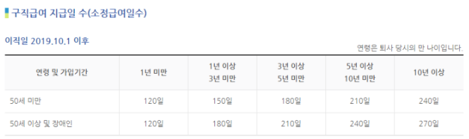 | 50세 미만 | 120일 | 150일 | 180일 | 210일 | 240일 |