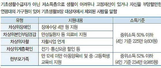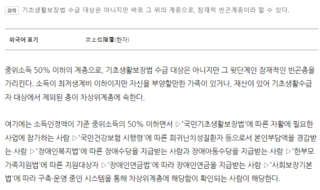 따라서 기초생활수급자는 아니지만 사실상 빈곤 계층으로 분류될 위험이 있는 분들을 차상위계층으로 분류하고 국가적으로 지원하는 제도입니다. 보통 소득이 최저 생계비를 넘지 않지만 자신을 부양할 수 있는 가족이나 재산이 있어서 제외된 사람들을 말합니다. 따라서 본인이 차상위계층 기준을 충족하는지 여부를 잘 확인하시는 것이 중요합니다.