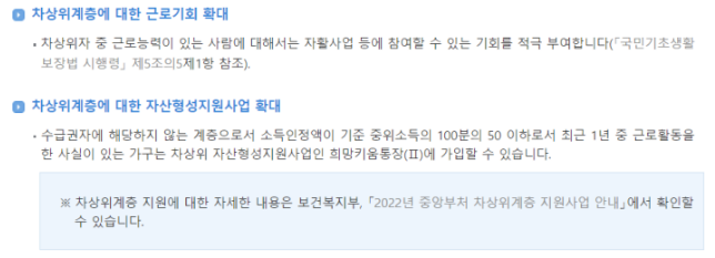 - 국민기초생활보장법에 따른 자활에 필요한 사업에 참가하는 사람