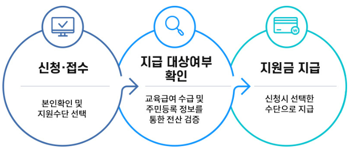 신청, 접수를 하고 나면 지급 대상 여부를 확인하며 이에 따라 최종 교육 급여 학습 특별 지원금 지원 여부가 결정되고 나면 교육 급여 특별 지원금이 신청 시 선택한 수단으로 지급됩니다.