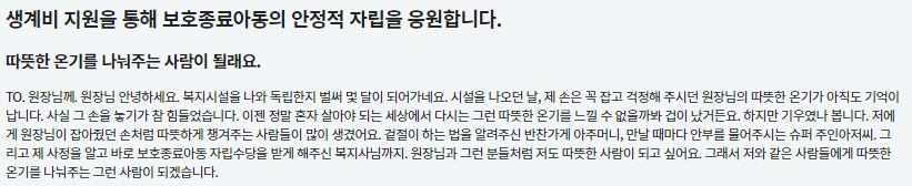여기까지 자립 준비 청년 자립 수당 신청 방법, 지원 대상, 혜택 등에 대해 함께 살펴보았습니다. 앞서 설명 드린 것과 같이 자립 준비 청년 자립 수당 혜택이 2022년 8월부터 월 30만 원 → 월 35만 원으로 인상되었고 지급 기간도 3년 → 5년으로 확대되었으니 지원 대상이 되시는 분이라면 꼭 신청하셔서 정부에서 제공하는 자립 지원 혜택 받으시길 바랍니다.