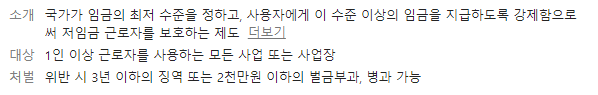 국가가 노사 간의 임금 결정 과정에 개입하여 임금의 최저 수준을 정하고, 사용자에게 이 수준 이상의 임금을 지급하도록 법으로 강제함으로써 저임금 근로자를 보호하는 제도