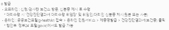참고로 공공보건포털을 통한 보건증 인터넷 발급은 공공 보건 의료 기관에서 받은 검사만 가능합니다. 사립 병원에서 검사를 받은 경우라면 공공보건포털을 통한 인터넷 발급이 불가합니다.