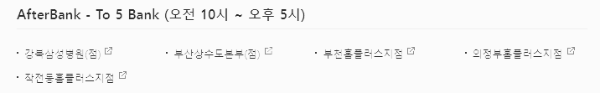 - 애프터뱅크 (To 5 Bank): 오전 10시 ~ 오후 5시